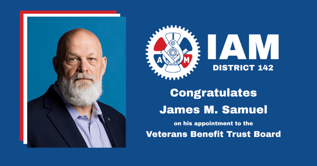 Dear Sisters and Brothers: IAM District 142 is proud to announce that General Chair James M. Samuel has been appointed to serve on the board of the IAM Veterans Benefit Trust (VBT). The IAM Veterans Benefit Trust was established to fulfill the legal requirements necessary for the IAM to operate as an accredited Veterans Service […]