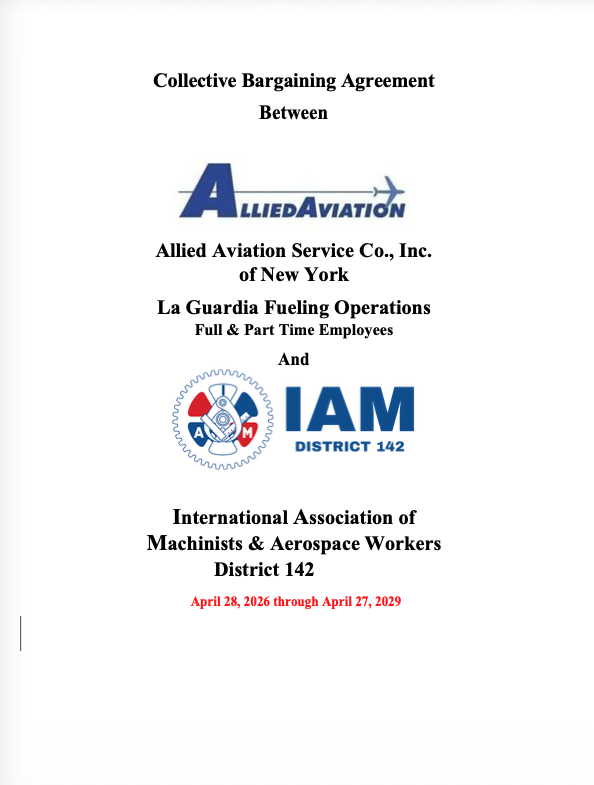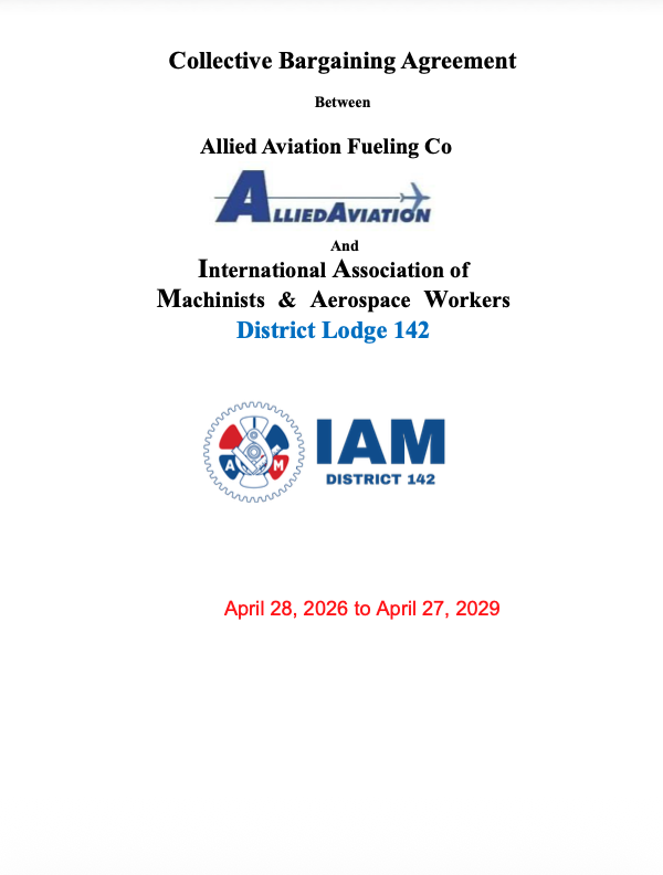 Dear Sisters and Brothers: District 142 is pleased to announce that an Agreement in Principle has been reached with Allied Aviation for our IAM members