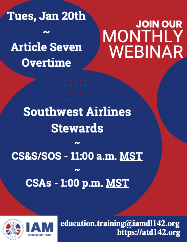 Southwest Airlines Shop Steward Monthly Webinar – January 20, 2026