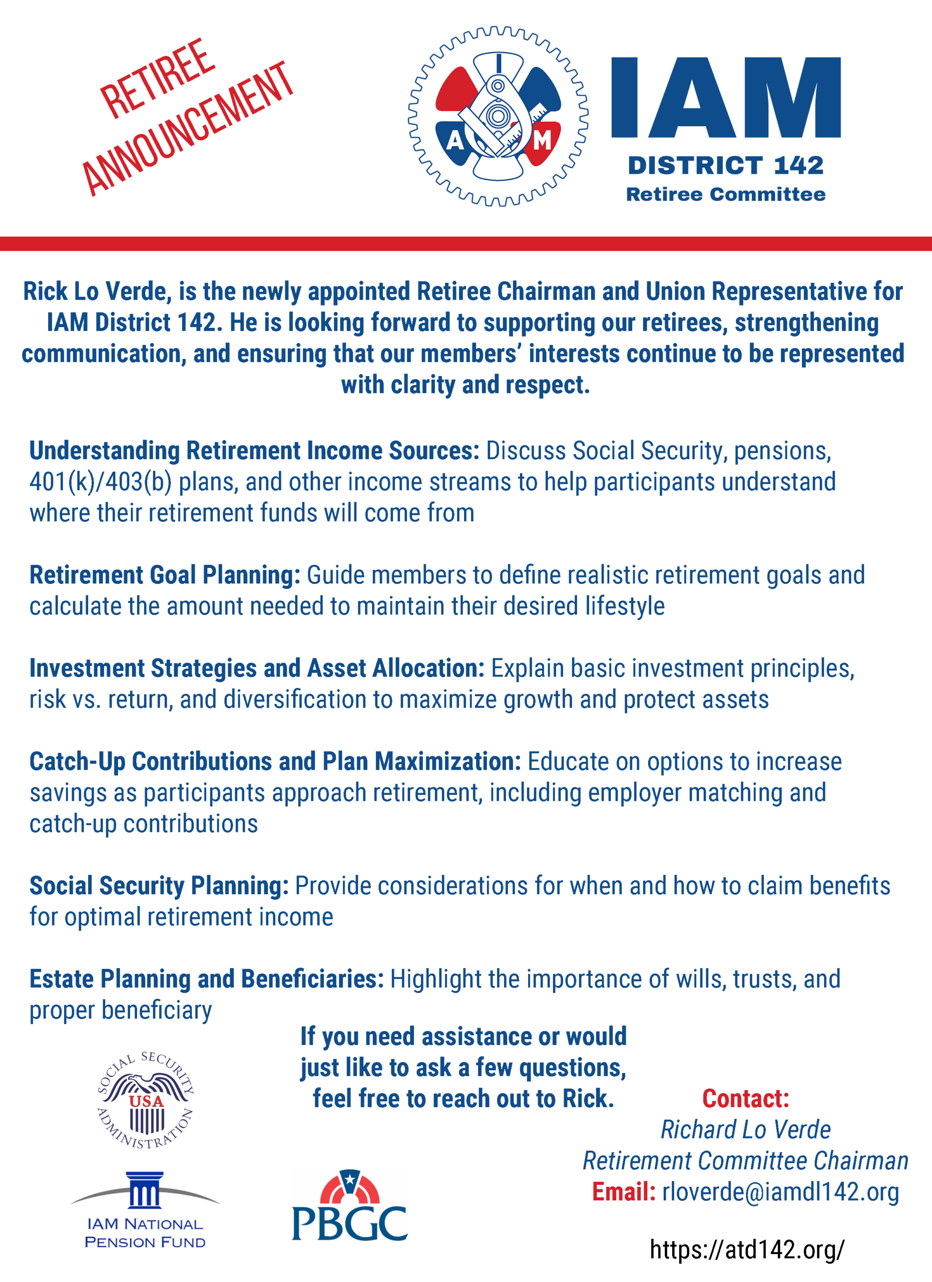 If you have any questions, suggestions, or concerns about this page, please contact DL 142 Director of Communications Todd Day at tday@iamdl142.org, or you can reach out to a General Chair.