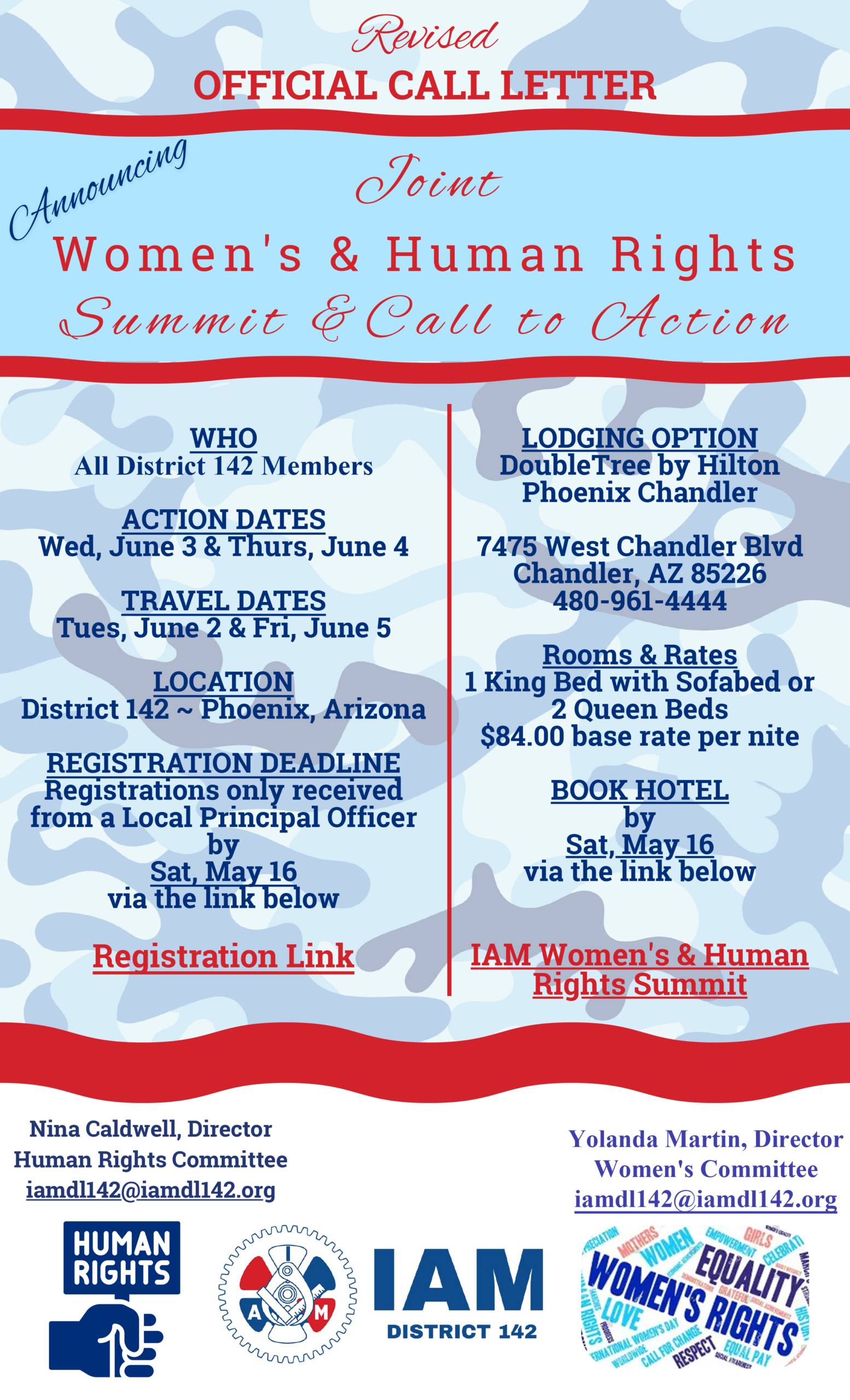 Please see the revised Official Call Letter below for the Joint Women’s & Human Rights Summit & Call to Action!